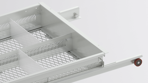 Custom design bearings with special coating and the inclined structure of the system provides a truly silent drawer system.
