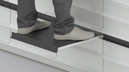 The step offers an ideal solution for easy access to upper drawers. Discreetly integrated and easy to open, the platform locks securely whenstepped on.